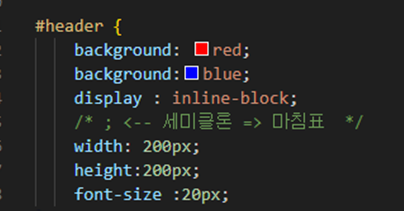 속성 (Propertise): 변경할 스타일 기능 (예: font-size, width, background-color) 을 나타내는 식별자입니다.